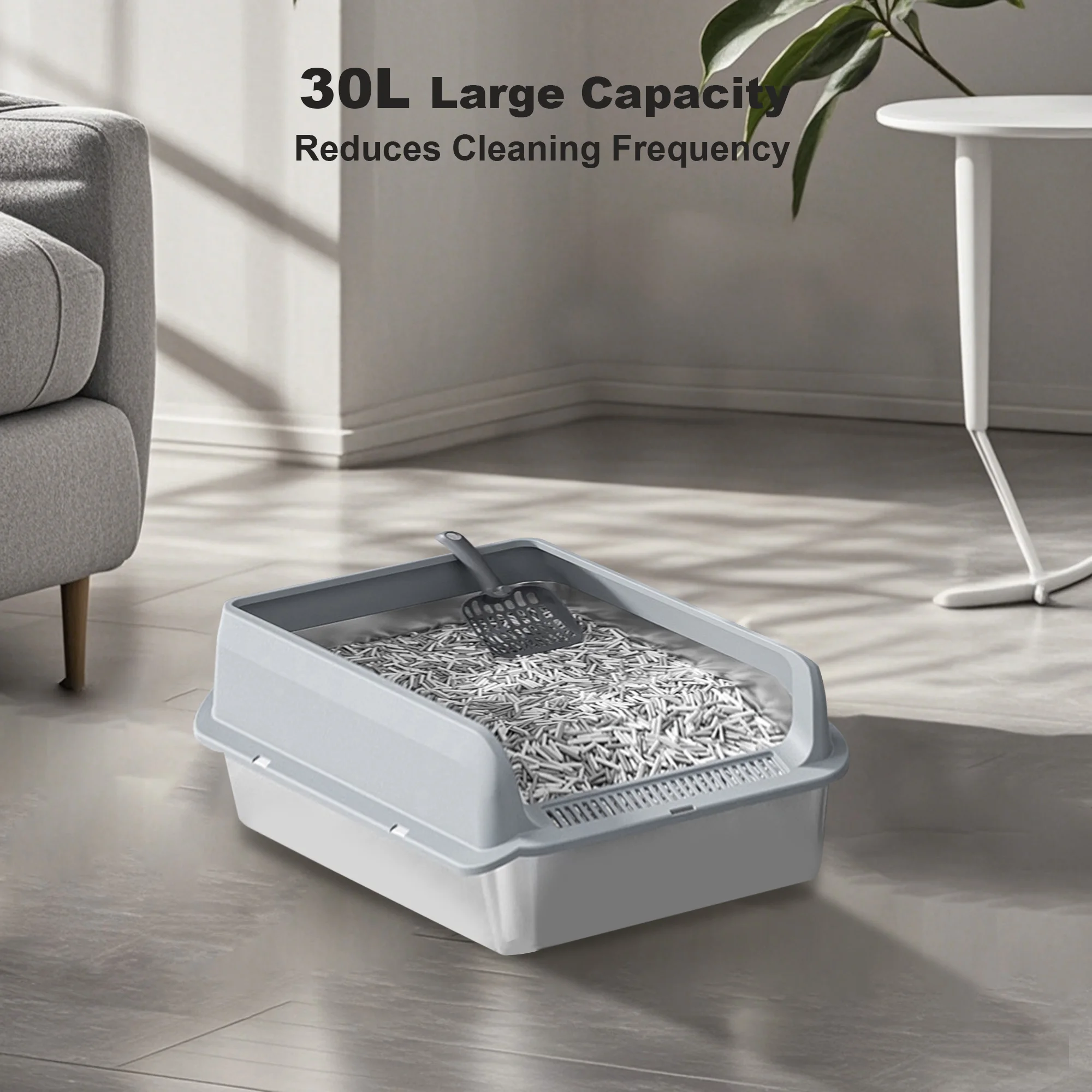 High Capacity: Measuring 60x40x20cm (or 60x40x15cm), this litter box offers ample height and capacity, providing plenty of space for your feline friend. With the ability to hold over 30L of litter, it can accommodate your cat's needs for 3-5 days.