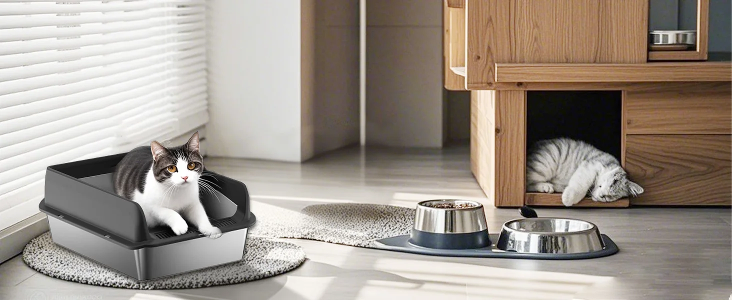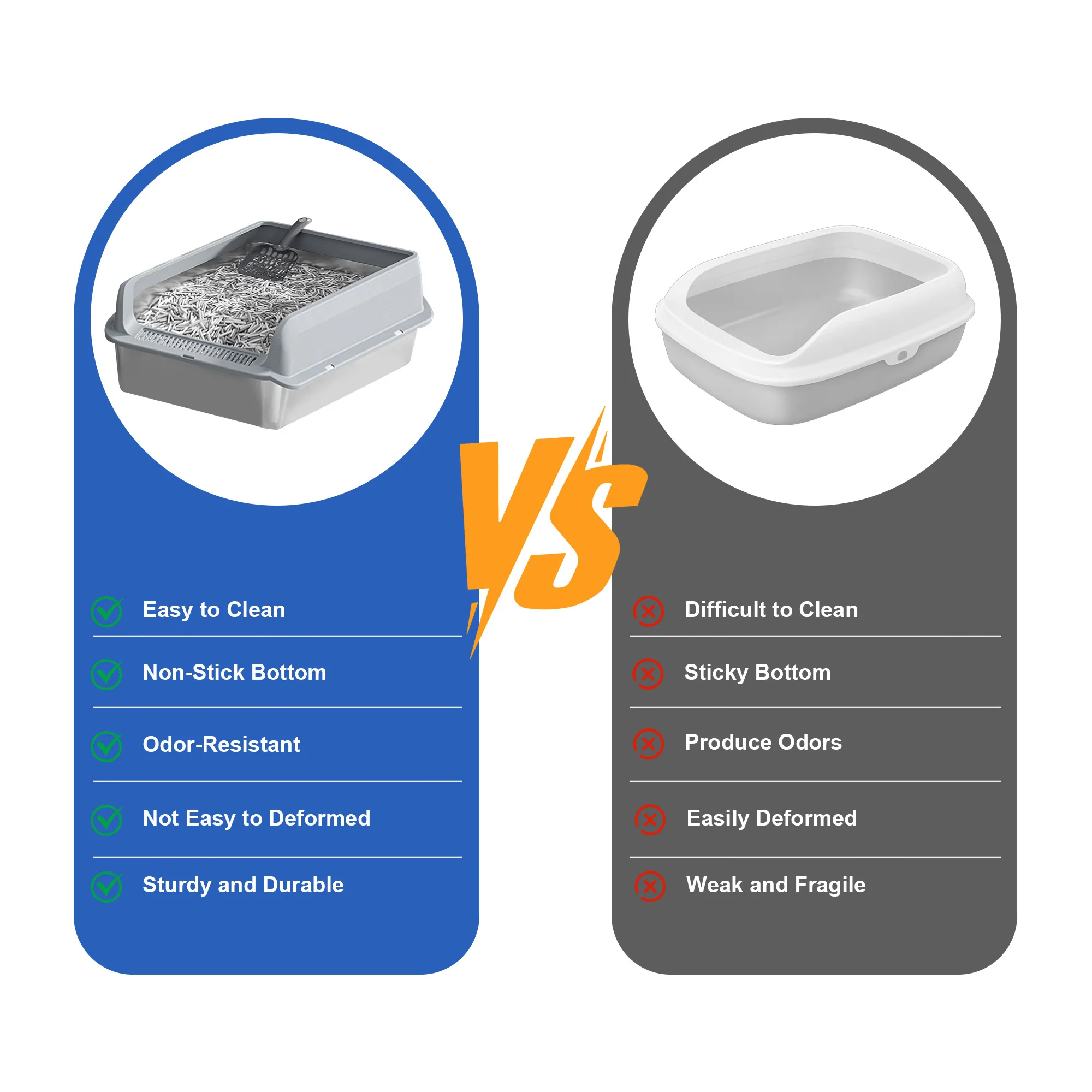 Sturdy Construction: Crafted from premium stainless steel, this cat litter box is resistant to rust and easy to clean. Its smooth surface allows for effortless rinsing or wiping. Thanks to its electrolytic finish, litter won't stick to the bottom.