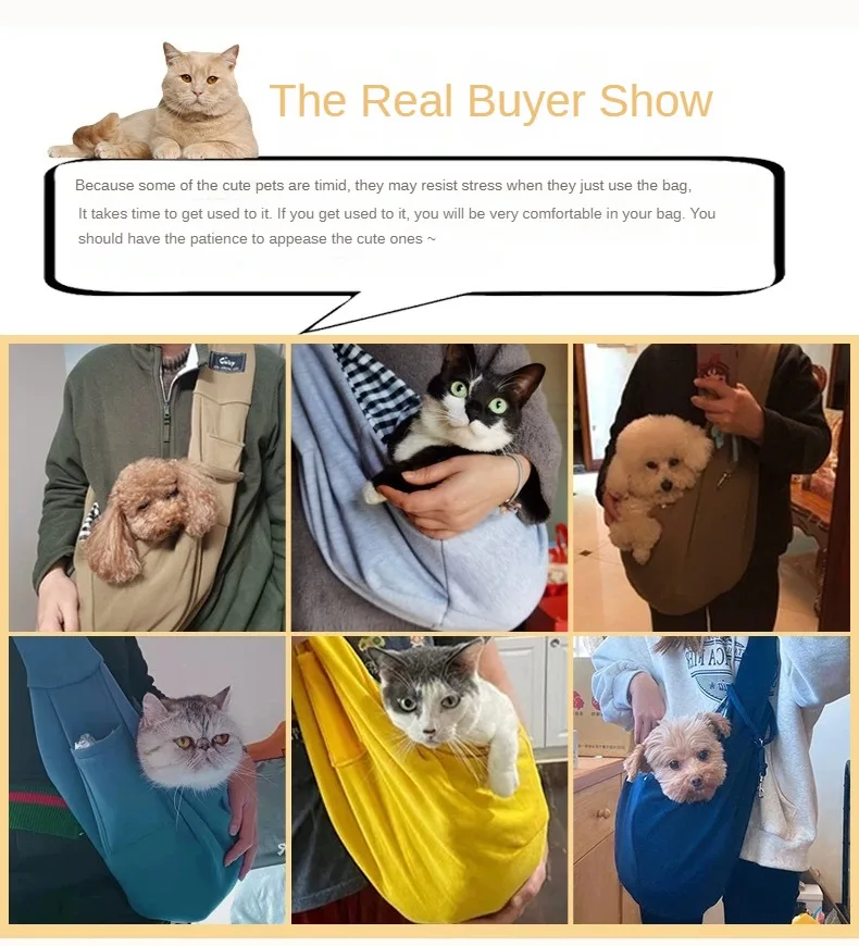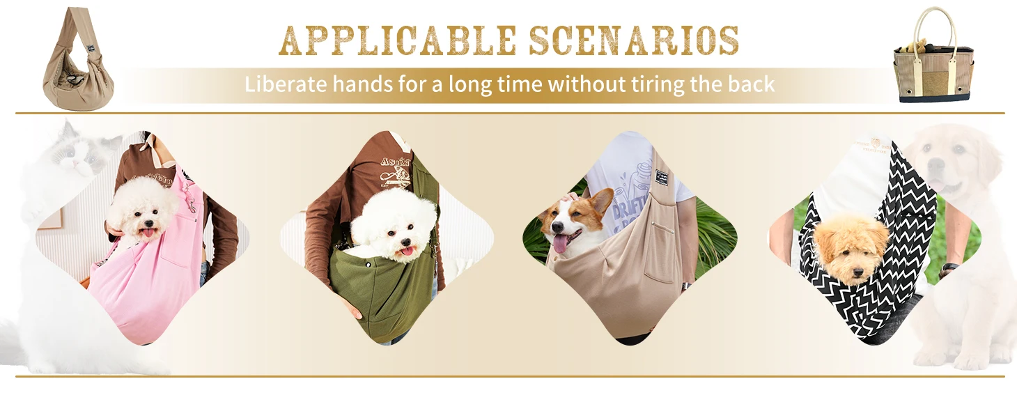 5.Kind Tips: When using the pet sling for the first time, please let the pets get used to the existence of it first. You can put pet sling on pets' bed or toys to get pets' own scent. Until they get used to the pet carrier, then you can gently put them in. The adaptation time depends on the pet's personality. Some dogs adapt quickly, but some nervous dogs need more time. Parents must be patient.